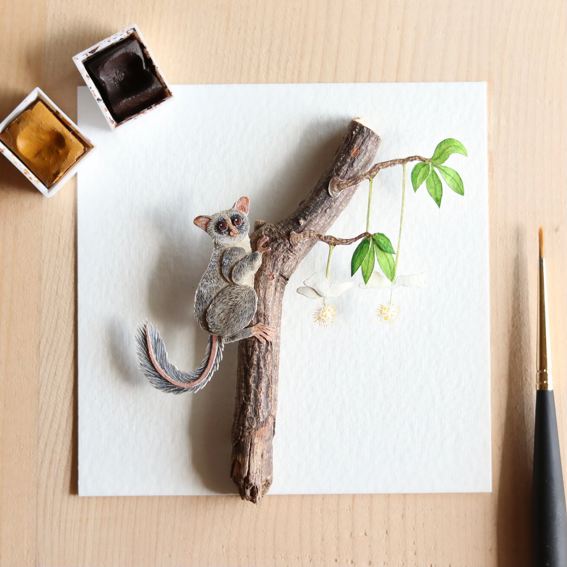 The artwork is painted with water colours.
