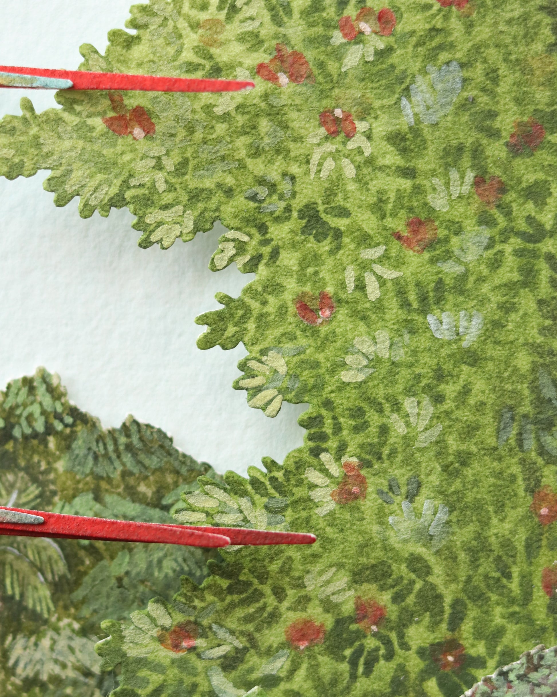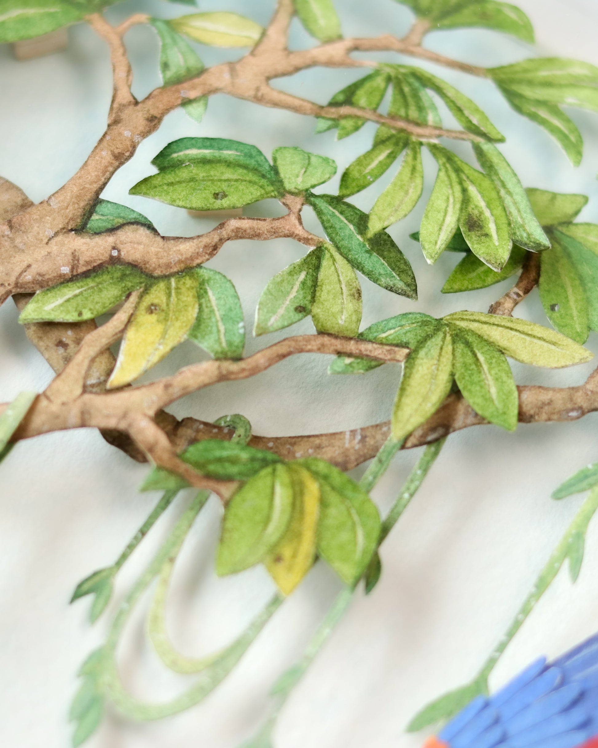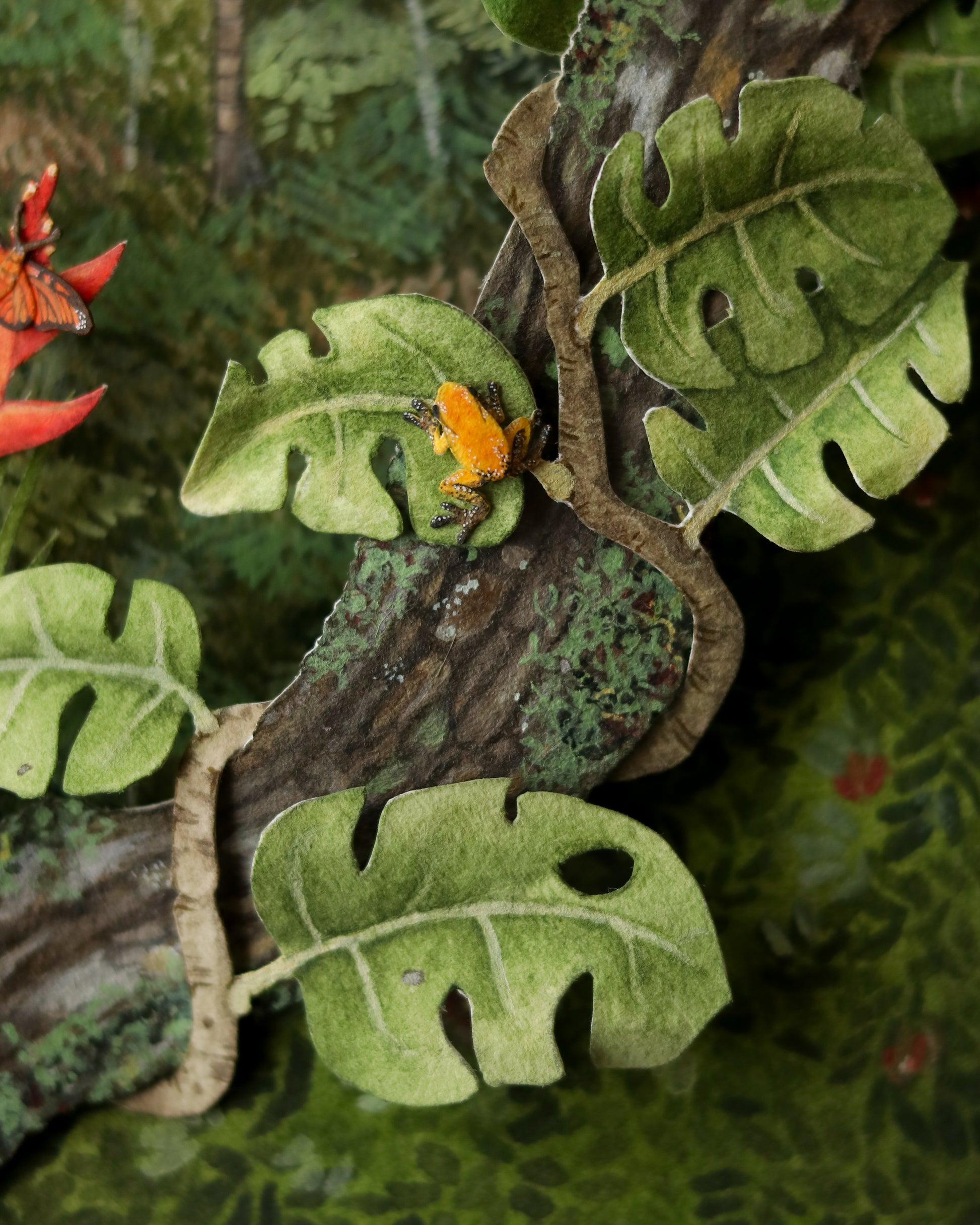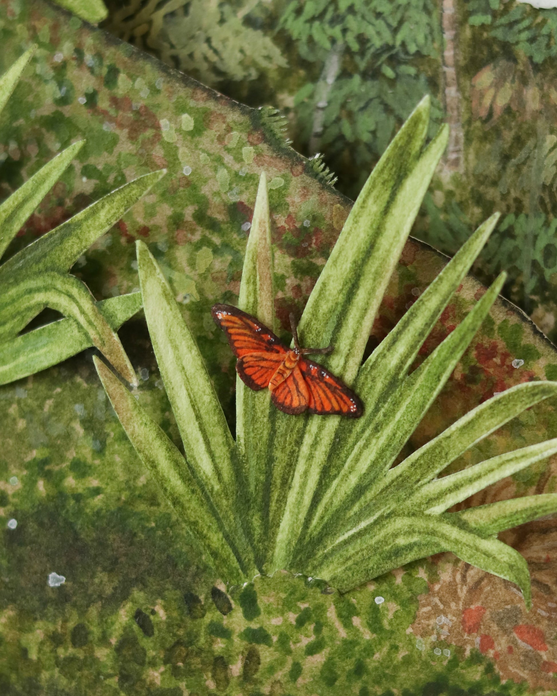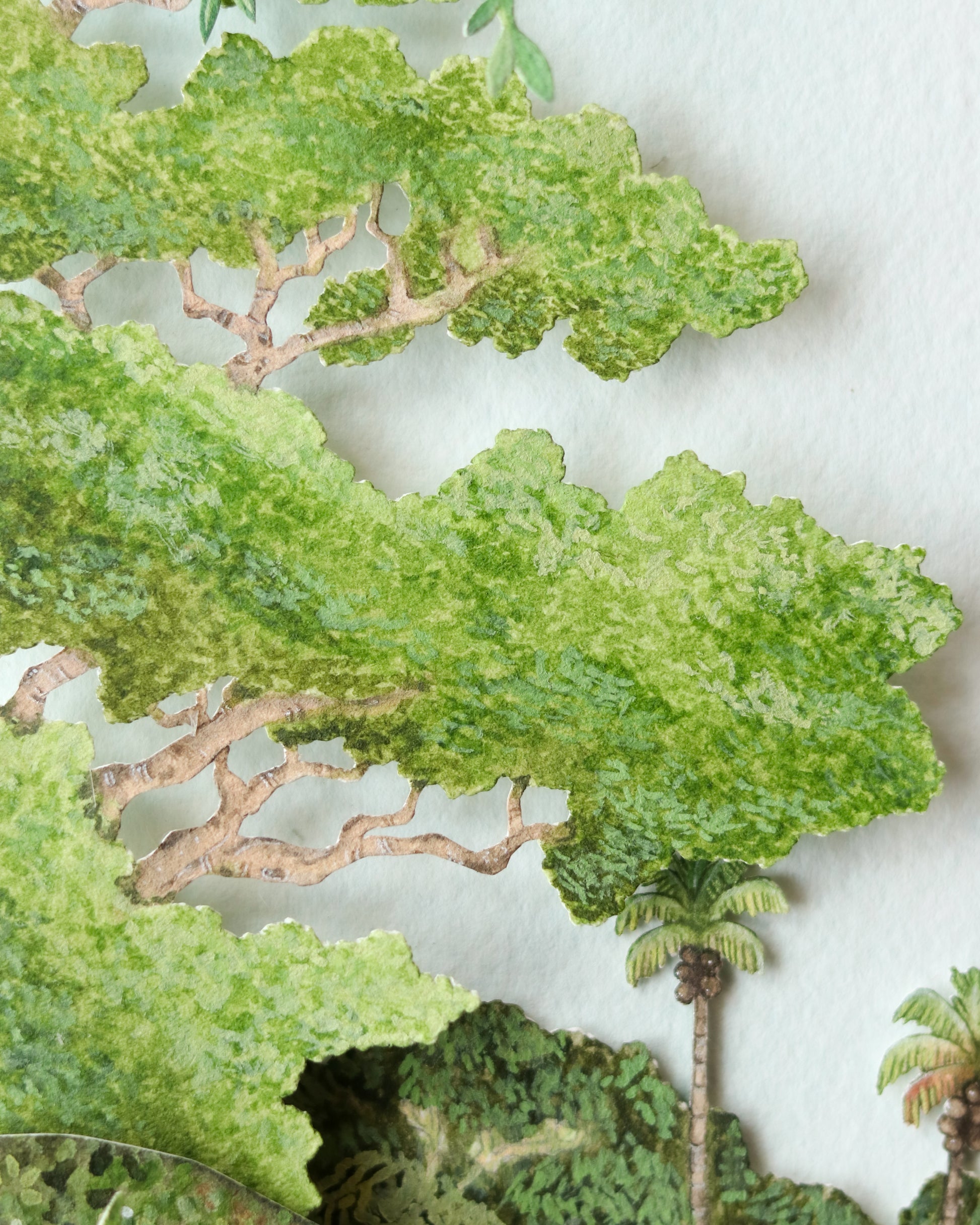 Crafted with over 25 individual layers of premium archival paper and brought to life with gouache and watercolour detailing, this miniature scene captures the vibrant beauty and ecological richness of one of the world’s most vital ecosystems.