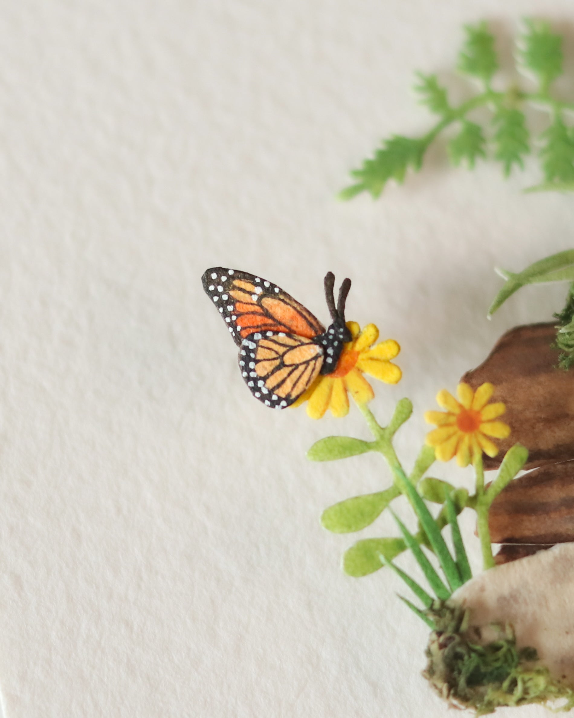 Handcrafted in layered paper with fine detail, this piece continues the series’ celebration of harmony between birds and their natural floral surroundings, all in miniature form.